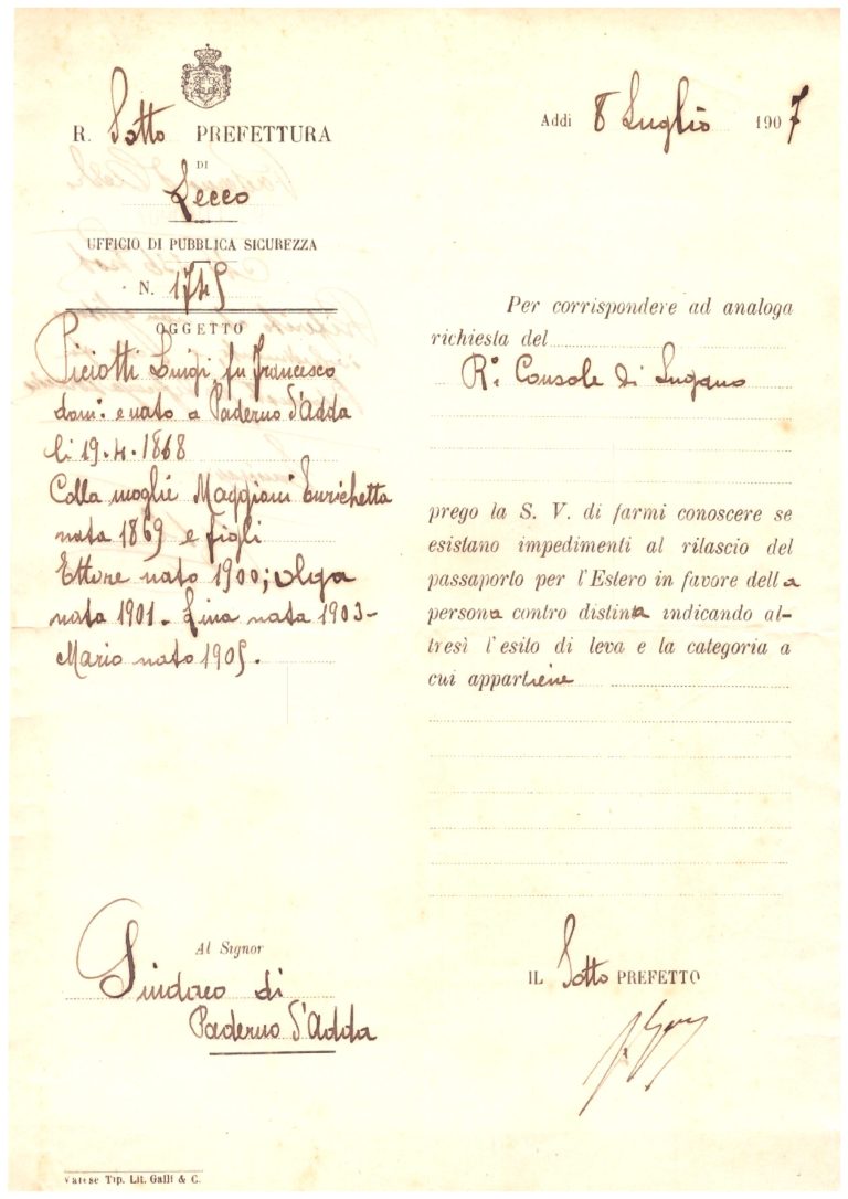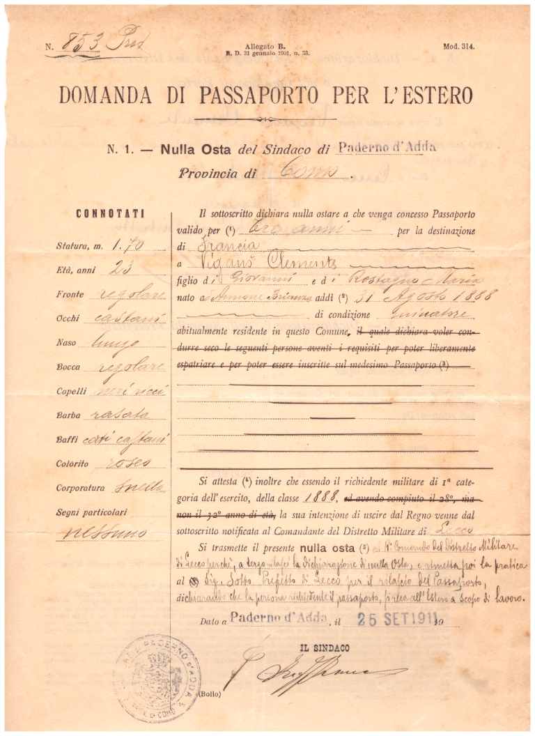 Documenti relativi al fenomeno dell’emigrazione all’estero nel periodo fra l’Unità d’Italia e la Prima guerra mondiale