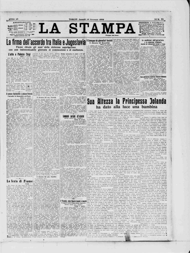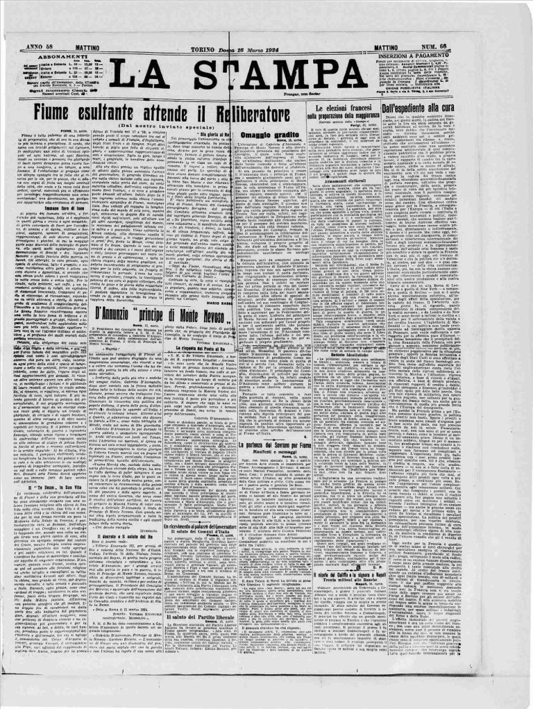 La stampa 28 gennaio 1924 La stampa 16 marzo 1924 La stampa 17 marzo 1924
