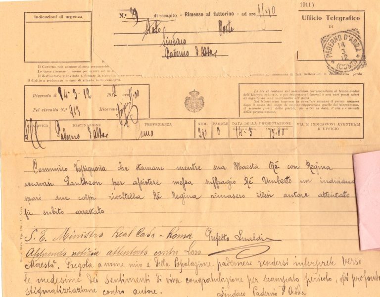 Documenti relativi all’attentato a Vittorio Emanuele III, 1912