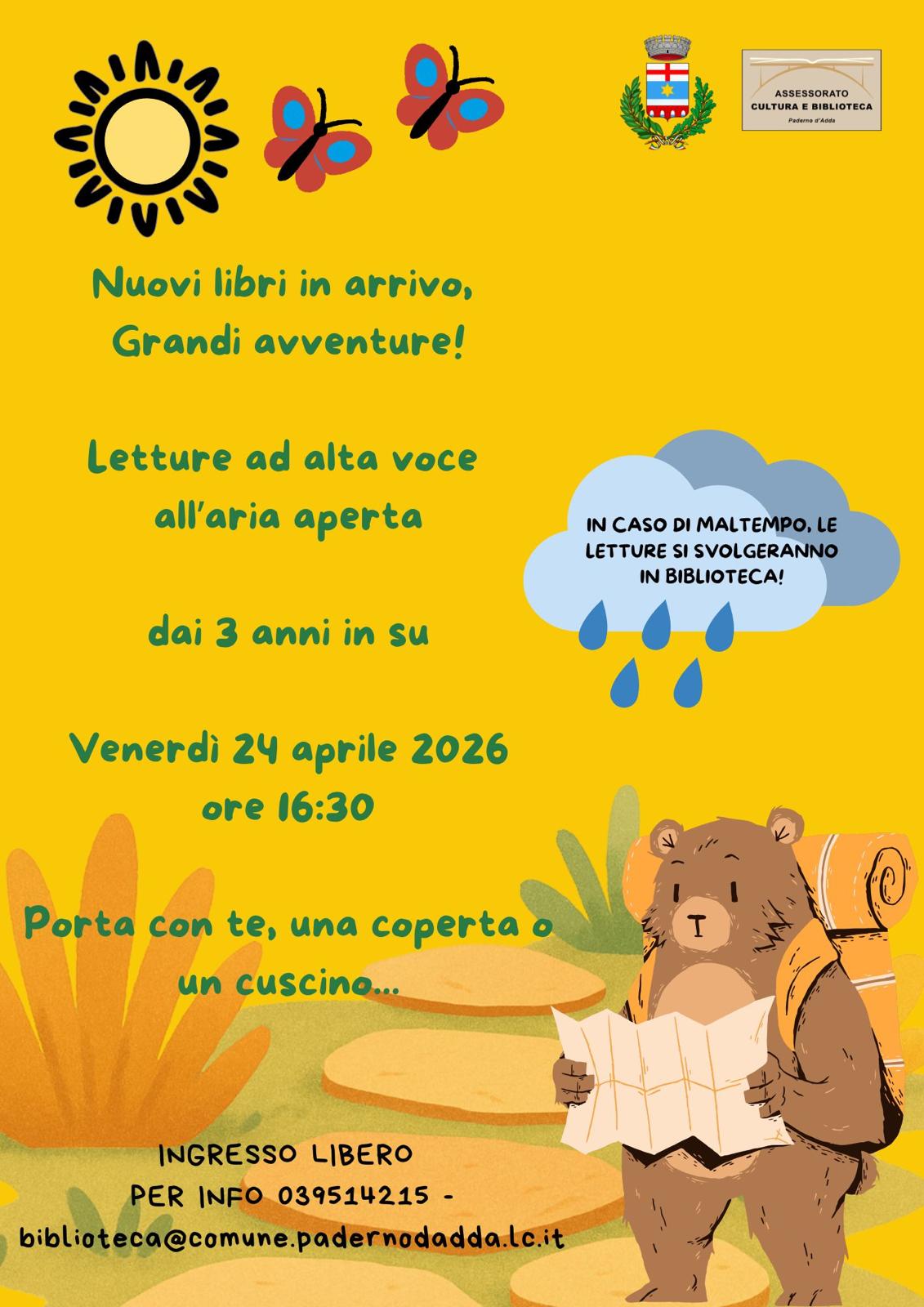 In caso di maltempo le letture si svolgeranno in biblioteca.